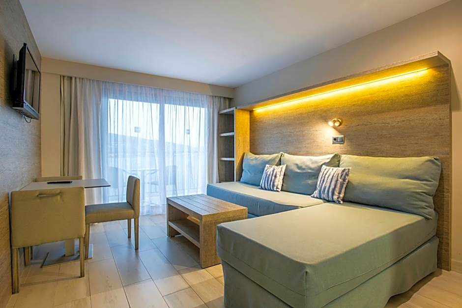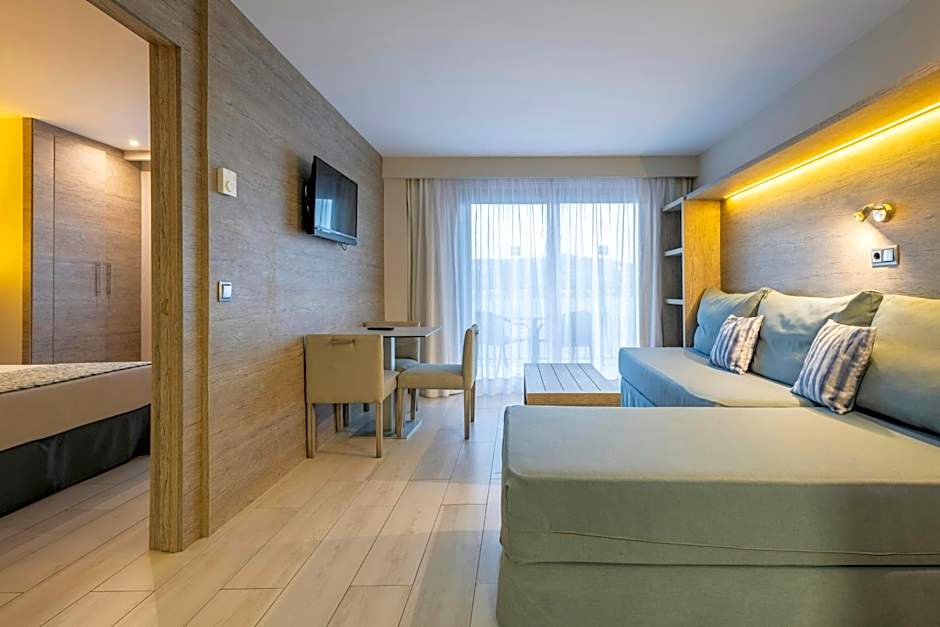 Two outdoor pools, both open year-round and for adults only, invite sun-filled days, while a separate kids’ pool keeps the younger guests entertained. The terrace and balcony with garden views offer perfect spots for a morning coffee or a twilight moment, and free beach umbrellas await for easy shore days.